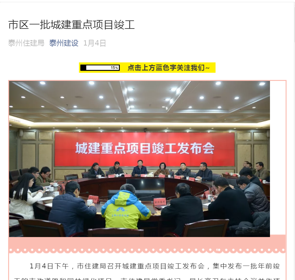 2、微信公众号。2018年,为适应时代发展,我局又对外大力推广了“泰州建设”局官方微信公众号,权威发布全市住建系统的重要惠民政策和政务信息,进一步方便公众及时获取住建信息,提高信息公布主动性、时效性。2018年局官方微信公众号共发布信息581条。