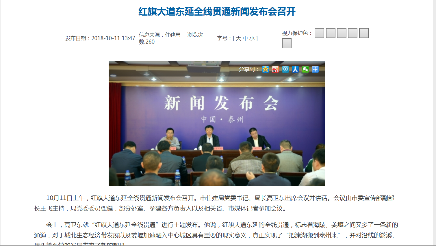 通过新闻发布会、在线访谈等方式,将重点项目建设情况及时准确地传递给社会。2018年10月11日,我局局长、党委书记高卫东就“红旗大道东延全线贯通”进行主题发布。2019年1月4日,我局又召开城建重点项目竣工发布会,集中发布一批年前竣工的市政道路和园林绿化项目,同时围绕我市城市建设方面等热点问题与网友们面对面沟通交流,为网友答疑解惑。