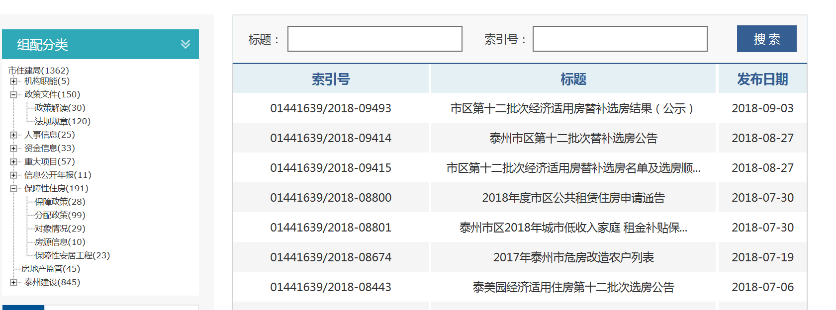 2018年我局在中国泰州门户网站信息公开专栏上主动公开政府信息134条。其中,机构设置主要职能主动公开政府信息1条、政策文件主动公开政府信息14条、重大项目主动公开政府信息13条、泰州建设主动公开政府信息37条、资金信息主动公开政府信息9条、房地产监管32条、保障性住房重点领域主动公开政府信息22条、人事任免公开政府信息5条。