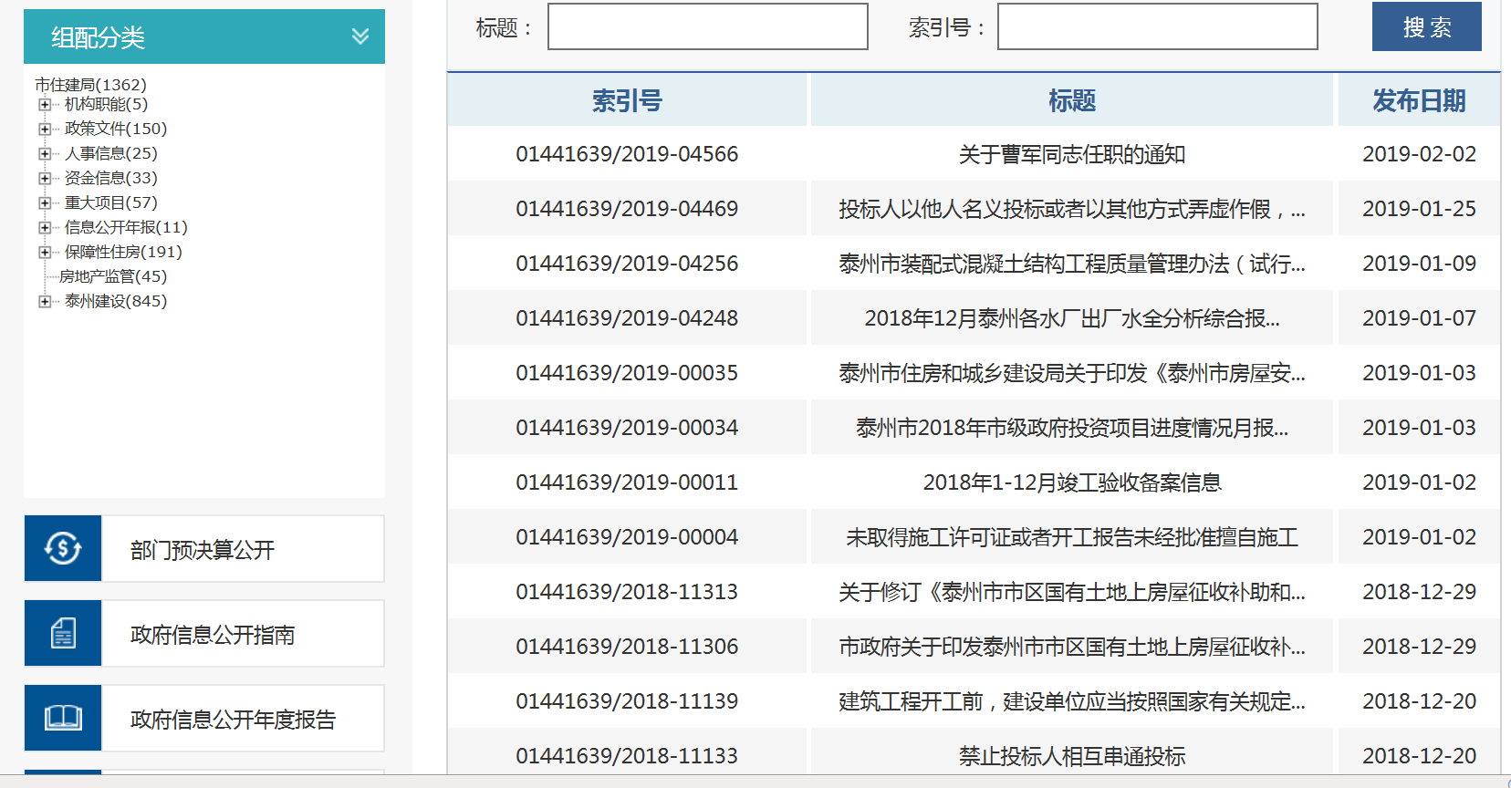 1、目前中国泰州门户网站和泰州市住房和城乡建设局门户网站是我局政府信息公开的主要载体。2018年,我局进一步优化和完善了泰州市住房和城乡建设局门户网站,根据我局职能对政府信息公开栏目进行优化调整,将原有栏目整合为泰州建设、通知公告、政府信息公开、部门单位、查询系统等5个板块。