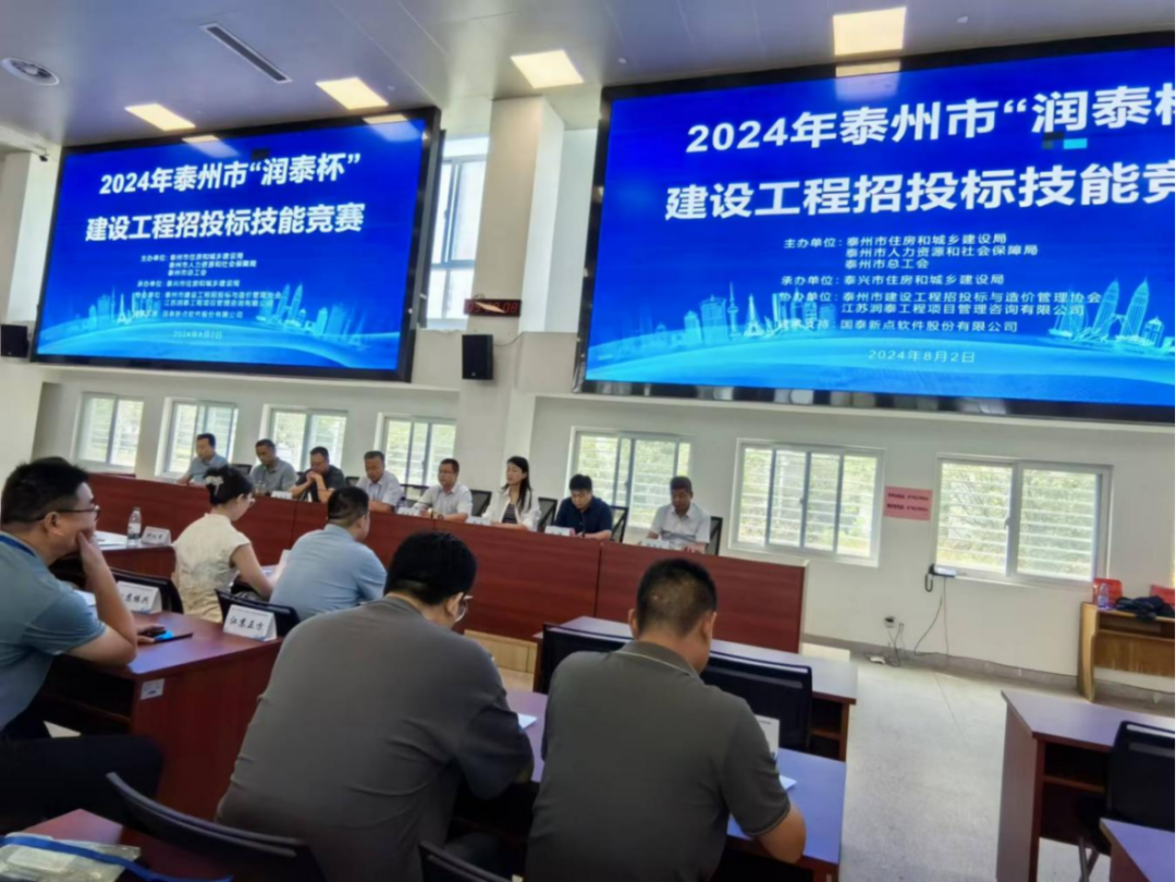 在全球瞩目的盛夏时节,奥运会激战正酣,来自世界各地的体育健儿尽情挥洒着汗水。在泰州,有一群招投标专业技术人员,同样以“更快、更高、更强”的顽强拼搏精神,在泰州大地上抒写着招投标领域的激昂篇章。近日,2024年泰州市“润泰杯”建设工程招投标技能竞赛在泰兴开赛。本次竞赛由市住建局、市人社局、市总工会主办,泰兴市住建局承办,市建设工程招投标与造价管理协会协办,江苏润泰工程项目管理咨询有限公司冠名协办,国泰新点软件股份有限公司提供技术支持。各辖市(区)选拔出的17支代表队51名选手参赛。本次竞赛包括理论考试、实践Ⅰ和实践Ⅱ操作三部分,全程采取上机考察的方式,理论考察内容包括招投标相关法律法规、规章及本省发布的政策性文件,实践部分着重考察招标组织、投标报价文件、技术标、商务标等文件的制作以及算量、开评标等业务水平。