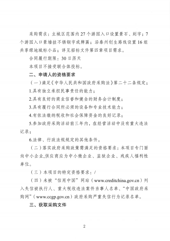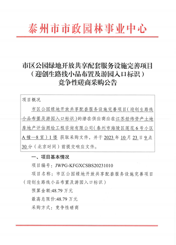 市区公园绿地开放共享配套服务设施完善项目(迎创生路线小品布置及游园入口标识)竞争性磋商采购公告